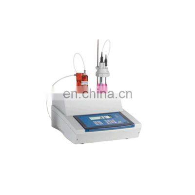 LCD display benchtop automatic potential titratorZDJ-4ACharacteristics:1.LCD display and English operation interface which can show measuring parameters and results.2.It has pre-titration, preset endpoint titration, blank titration or manual titration functions. It can form specific titration modes according to the user’s habit.3.There are several different titration modes with different sensors: acid base titration, redox titration, precipitation titration, complexometry titration and non-aqueous titration.4.The stirring system adopts PWM modulation technique and applies software to reduce the noise.5.It has RS-232 communication port and can be connected with TP-16 printer to print measuring data, titration curve and calculation results.6.Specific Rex titration software can be used to connect with PC and the results can be shown on the screen. Also, the titration modes can be edited and modified for remote control and calculation of several statistics.7.The titrator adopts the specific material which is against perchloric acid corrosion and can conduct several titration reactions.Technical data:ModelZDJ-4AParameterspH, mV(ORP),TempMeasurement RangepH(0.00~14.00)pHmV(-1800.0~1800.0)mVTemp(-5.0~105.0)℃ ResolutionpH0.01pHmV0.1mVTemp0.1℃ AccuracypH±0.01pH±1bitmV±0.03%(FS)Temp±0.3℃ Burette DriveRepetitivity of Titration analysis0.2%Control titration sensitive±2mVTitration volumetric Accuracy10ml burette: ±0.025ml; 20ml: ±0.035mlBurette Resolution10ml burette: 1/10000; 20ml: 2/10000Infusion or supplementary speed of burette(5±10)s (when burette is full scale)Stability±0.3 mV±1bit/3hControl titration sensitive±2mVStability(±0.3mV±1bit)PowerAC(220±22)V; (50±1)HzDimension&Weight340×400×400mm, 10kg Please send inquiry>> If you need any detail packing information, please contact us>> If you have any question, please contact us>>