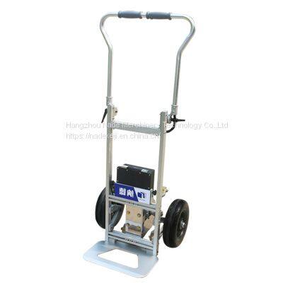 LA-2170 light electric stair-climbing trolley, the body is lighter, weight of 23kg. The handrail can be folded, which takes up little space. It's suitable for household appliances/ furniture/ bathroom industry/small decoration industry/ moving company/logistics company/ canteen handling goods/ boxed goods/ bagged goods/ beverages, beer, mineral water and other industries.