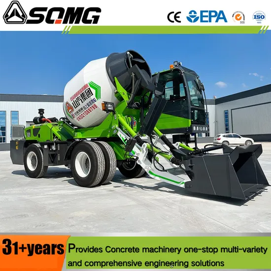 SQMG JF Self Loading Concrete Mixer Truck is a kind of unique vehicle which combines concrete mixer, transit mixer and wheel loader.