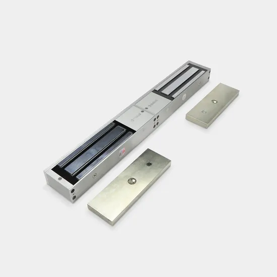 Electromagnetic locks are a more and more popular choice among security installers for being simple to install, durable, reliable and very resistant. A large electromagnet is mounted on the door frame and the Armature plated is mounted on the door.
