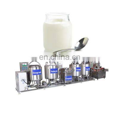 Product DescriptionDairy Processing Machines yogurt making machine milking machine for cowsIntroduction of Yogurt production lineThe whole yogurt production line can sterilize various dairy products, such as goat milk, horse milk, yak milk, yogurt, and fresh milk. The entire processing from the first step to the final yogurt takes approximately 6-8 hours. All are made of food grade stainless steel.Parameters of automatic yogurt filling sealing machineItemSize(mm)PowerVoltage1. Storage Tank1700*900*15502.6kw380v 50hz2. Milk Heating Tank1200*1000*165018kw380V/50hz3. Homogeniser1010*616*9754kw380v 50hz4. Pasteurizer1200*1000*165018kw380v 50hz5. Yogurt machine1200*1000*165018kw380v 50hz5. Filling machine 1300*1300*1750 // 1. Yogurt Storage tankThe raw milk is stored in a storage tank, and the temperature in the tank is set to 3-6 ° C. The fresh milk passes through a single filter to filter impurities of the fresh milk and finally enters the preheating tank through the milk pump.2. Milk Heating TankThe main purposes of milk heating in the yogurt production line are as follows:1). Kill microorganisms that may cause disease2). Eliminate most other organisms to increase the shelf life of the product3). Make the protein have a certain degree of denaturation. This improves the consistency and viscosity of the yogurt and prevents the separation of whey.3. HomogeniserThe benefits of homogenization for yogurt production are as follows:1)Improved the consistency of yogurt2)Higher stability for whey separation3)Yogurt looks whiter and has a more creamy and richer flavor than non-homogenous yogurt4)Better distribute stabilizers in the system4. PasteurizerBefore the fresh milk sterilization process is started, it is necessary to ensure that the water level of the sterilizer is reached at the water level mirror. Set the sterilization temperature (usually set temperature 85 ° C). Turn on sterilization heating, sterilization and stirring. When the milk temperature reaches 85 °C, the device will give an alarm and the sterilization will be completed.5. Yogurt machineThe pasteurized fresh milk is fed into the fermenter through the milk pump. Before the fermentation process is started, the temperature of the fermenter is usually set at 43 ° C, the fermentation time is usually 8 hours, the fermentation heating is started, and the fermentation is stirred. After the milk temperature has reached 43 degrees, the corresponding strain is added and the yogurt is fermented. After 8 hours, the yogurt fermentation process will sound an alarm. 5. Filling machineWe have the capacity of 200 L, 300L, 500L, 1000L, besides, our company also can supply the machine according the requirement of customer, the milk can be canned into bottle, bag or cup by filling machine. FAQ1. Do you want to produce liquid yogurt or solid yogurt?If you are producing liquid yogurt, you need a liquid-related machine.2. What is your daily capacity?We produce 200L, 300L, 500L, 1000L.3. Do you need to fill yogurt?We can match the filling machine according to your requirements, can be filled, can be bottled.4. What is the temperature range of the refrigerating tank?The temperature range is 4-45 degrees. If it exceeds 45 degrees, the machine will not work.5. What is the ratio of materials that can be added during the yogurt making process?The ratio of bacteria to milk and white sugar is: 1L milk plus 6-8% sugar, 1g strain6. What machines are needed to make yogurt?Milking - preheating - sterilization barrel - homogenizer - yogurt machine - filling machine7. What is the working principle of the sterilization barrel?It is mainly pasteurized by high temperature sterilization.Feedback Contact Us