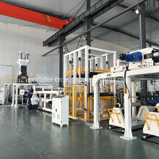 High Speed Polystyrene PP PS HIPS PET APET GPET GAG Plastic Sheet Extrusion Production Line This line is specially designed for mono/multi Layer sheet for packing indrustry. The technology of "Single Screw extruding with low dew-point dehumidifying system " for high quality products in high transparency without buddle, which will be very important for thermoforming. Raw Material:1. can be virgin plastic material. PP, PS, PET, PLA, APET, GPET, GAG2. can be recyclable material, like PET Bottle Flakes, PP, PS PET granules SHEET SPECIFICATION:Usual Sheet Width: 600-800-1000-1200mmUsual Sheet Thickness: 0.2-2mm APPLICATION:1. This line is specially used for producing PET/PBT/PP/PE/HIPS/EVAOH sheet.2. Surface Treatment: Adding some additives can improve intensity/toughness/rigidity, flame retardant, embossing, frosting, etc.3. Application: Packing, printing, stationery, art works etc.4. Main Products: Gift/ad/file bag/lamp cover/food packaging FEATURES:1. Screw with special mixing and plasticization function.2. Coat hanger T-type die head with two throttle design enable to regulate the sheet thickness accurately.3. Horizontal. vertical, 45 degree incline type 3 Roller Calendars may be lifted freely, sheet thickness shall be regualted by screw and pressing roller.4. Separate roller temperature control system to control the temperature of pressing roller to gain even sheet thickness.5. Exact slicing machine, excellent cross surface.6. Winder with big torque motor, and it's speed and tension force adjustable.7. Automatic metering to set the length of the products.MAIN TECHNICAL DATA: