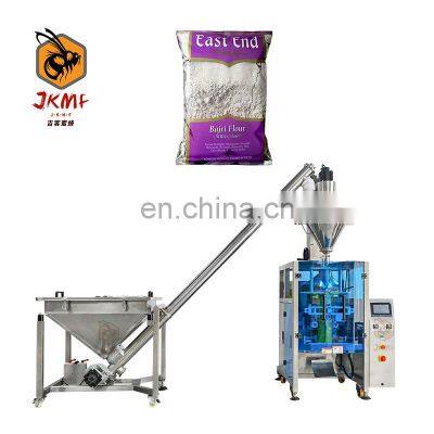 Factory direct price big vertical powder packing machine big pack flour powder packing machine color touch screen operationProducts DescriptionApplication>What can this machine pack?packaging of materials requiring high accuracy of measurement or careful handling,such as milk powder, sugar powder, coffee powder, wheat flour, detergent powder, coconut powder,spice powder etc.If you need other bag types, we can provide the machine you need, please click to contact me. Machine InformationHigh precision screw measuring machineBag fromer and bag sealing deviceBag cutting deviceThe machine is equipped with inverter, PLC, servo motor, voltage regulator, etc. to ensure the stable operation of the machine.Machine ParametersMachine Host Model320L420L520L620L720L820LFilm Width(mm)Max.320Max.420Max.520Max.620Max.720Max.820Bag Length(mm)80~24080~30080~350150~350100~45080~500Bag Width(mm)50~15060~20080~250200~350100~350180~400Filling Range(ml / g)150~800150~1500150~2000150~4000150~4000150~6000Packaging Speed(bags/min)5~705~6010~505~5010~405~30Machine Powder220V50/60HZ2KW220V50/60HZ2.2KW220V50/60HZ3KW220V50/60HZ3KW220V50/60HZ3.6KW220V50/60HZ3.6KWMain Features1)Imported PLC full computer control system, color touch screen, easy to operate, intuitive and efficient.2)Impoted servo film transport system, imported color code sensor, accurate positioning, excellent overall performance and beautiful packaging.3)A variety of automatic alarm protection functions to minimize losser.4)Flat cutting, pattern cutting, linking cutting can be realized by changing the tools;easy operation with smooth bags.5)Bag-making equipment can be changed according to specific requirement of customers and products.6)Optional English or other languages screen display, easy and simple operation. Both packaging speed and bag length can be set with one click.7)All machines have CE certification and ROSH certificate.Optional DevicesDepending on your needs, you can choose to add the following configuration. Such as thermal transfer coding machine, linking bag device, gas-filled device, easy tearing device, gusseting device and hole device.Machine Working Process1st step: Setting the parameters you want by touch screen.2nd step: The screw measuring machine automatically measures and fills according to the set parameters.3rd step: The motor automatically pulls the film quickly, and the date printer prints the date at the same time.4th step: The bag former will make the bag automatically.5th step: The horizontal and vertical cutter device will seal the middle and of the bag.6th step: You will get the nicely paper or plastic bag type.Why Choose UsJIKE BEE MACHINERY has a professional team to provide customers with various packaging solutions. Fully understanding the needs of customers,engineers design the most suitable solution. We have our own processing and assembly workshop and quality inspection and debugging process to ensure the quality of the machine. After acceptance by the customer, they are packed in international standard wooden cases and shipped.Company ProfileFoshan Jike Bee Automation Equipment Co., Ltd. is a manufacturer of automatic packaging equipment.We are a production-oriented enterprises focused on product innovation, factory direct sales and perfect after-sales service in one.The automatic packaging equipment for granule, powder, liquid and sauce produced by the Jason company is at the advanced level of the industry,it can be customized production automatic material packaging line for all kinds of products .Mainly applicable to: food, hardware, drugs, daily chemicals, pesticides, fruits and vegetables, cosmetics, other industries.The company has its own patent and product technical certification, which can bring customers high quality equipment and worthy of customer trust.Customer PhotosOur customers have covered more than 80 countries around the world.And give us unanimous praise.CertificationsFAQQ1:Do you have manual or operation video for us to know more about the machine? Yes, not only manual or operation video, 3D drawing also available to make as per your design,also the video we can make of testing the material from our packaging machine if your packing goods easier for us to find from our local market. Q2:How can I trust you for the first time business ?Please note our above business license and certificate. And if you don't trust us, then we can use Alibaba trade assurance service, guarantee your money, and guarantee your machine's on-time delivery and machine quality.Q3:Is engineer available to serve oversea?Yes, but the travel fee is paid by you. So actually to save your cost, we will send you a video of full details machine installation and assist you till the end.Q4:How can we make sure about the machine quality after we put the order?Before delivery, we will send you the pictures and videos for you to check the quality, and also you can arrange for quality checking by yourself or by your contacts in China.Q5:Will you provides the door to door service?Yes. Please offer us your final destination, we will check with our agent to see if it available, and most of the area is ok for us to clearing and sending in your countries.
