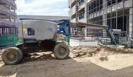 The Genie Z62-40 aerial lift truck is designed to provide an efficient and safe working environment. Its full-time active swing axle and four-wheel drive system help maintain traction when traveling over rough ground, ensuring excellent all-terrain adaptability. The dual parallelogram mechanism and full proportional control achieve accurate positioning and smooth performance of the crank arm, while the 1.52-meter crank arm can rotate vertically through 135°, providing more precise positioning. In addition, the Gini Rapid Boom Lifting System allows operators to lower and retrieve materials and then return to working height more quickly, resulting in increased productivity. The self-leveling platform, on the other hand, ensures stability during the work process.