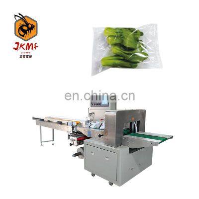 The hot selling products factory go down the pillow packing machine vegetable pillow packing machine servo control feedingProducts DescriptionMachine ApplicationAutomatic flow packing machine is a widely used packing machine. Suitable for all kinds of product packaging. Including medical supplies, vegetables and meat, baked bread, snacks and candy, daily necessities, hardware accessories, etc.If you need other bag types, we can provide the machine you need, please click to contact me. Machine InformationModelJK-250XJK-350XJK-450XJK-600XJK-700XFilm WidthMax.250 mmMax.350 mmMax.450 mmMax.600 mmMax.700 mmBag Length45~330 mm65~330 mm120~450 mm130~450 mm120~600 mmBag Width30~110 mm50~160 mm60~210 mm60~280 mm50~330 mmProduct HeightMAX. 70 mmMAX. 80 mmMAX. 110 mmMAX. 110 mmMAX. 150 mmPacking Speed40~230 bags/min40~230 bags/min30~150 bags/min30~180 bags/min20~120 bags/minPowder220V,50/60Hz,2.4KWMain Features1.Dual frequency conversion control, Bag length can be set and cut in one step, saving time and film.2.Interface features easy and quick setting and operation.3.Self failure diagnosis, clear failure display.4.High sensitivity photoelectric eye color tracing, numerical input of cutting sealing position for extra accuracy.5.Temperature independent PID control, more suitable for packaging different materials.6.Positioned stop function, without sticking knife or wasting film.7.Simple driving system, reliable working, convenient maintenance.8.All control is realized through software, easy for function adjusting and technical upgrade.Optional DevicesDepending on your needs, you can choose to add the following configuration. For example date printer, linking bag device, gas-filled device, easy tearing device and hole device.Machine Working Process1st step: Put the packaging film on the holder and wear the film as required.2nd step: Setting the parameters you want by touch screen.3rd step:Put the materials to be packed on the conveyor belt4th step: The bag former will make the bag automatically.5th step: The horizontal and vertical cutter device will seal the middleand of the bag.6th step: You will get the nicely paper or plastic bag type.Why Choose UsJIKE BEE MACHINERY has a professional team to provide customers with various packaging solutions. Fully understanding the needs of customers,engineers design the most suitable solution. We have our own processing and assembly workshop and quality inspection and debugging process to ensure the quality of the machine. After acceptance by the customer, they are packed in international standard wooden cases and shipped.Company ProfileFoshan Jike Bee Automation Equipment Co., Ltd. is a manufacturer of automatic packaging equipment.We are a production-oriented enterprises focused on product innovation, factory direct sales and perfect after-sales service in one.The automatic packaging equipment for granule, powder, liquid and sauce produced by the Jason company is at the advanced level of the industry,it can be customized production automatic material packaging line for all kinds of products .Mainly applicable to: food, hardware, drugs, daily chemicals, pesticides, fruits and vegetables, cosmetics, other industries.The company has its own patent and product technical certification, which can bring customers high quality equipment and worthy of customer trust.Customer PhotosOur customers have covered more than 80 countries around the world.And give us unanimous praise.CertificationsFAQQ1:Do you have manual or operation video for us to know more about the machine? Yes, not only manual or operation video, 3D drawing also available to make as per your design,also the video we can make of testing the material from our packaging machine if your packing goods easier for us to find from our local market. Q2:How can I trust you for the first time business ?Please note our above business license and certificate. And if you don't trust us, then we can use Alibaba trade assurance service, guarantee your money, and guarantee your machine's on-time delivery and machine quality.Q3:Is engineer available to serve oversea?Yes, but the travel fee is paid by you. So actually to save your cost, we will send you a video of full details machine installation and assist you till the end.Q4:How can we make sure about the machine quality after we put the order?Before delivery, we will send you the pictures and videos for you to check the quality, and also you can arrange for quality checking by yourself or by your contacts in China.Q5:Will you provides the door to door service?Yes. Please offer us your final destination, we will check with our agent to see if it available, and most of the area is ok for us to clearing and sending in your countries.