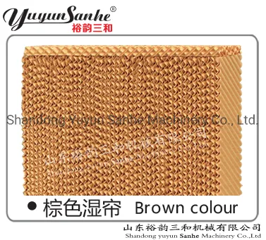 | 1. YUYUN SANHE cooling pad use new material and space crossing linking technology, high water absorbability ,high water-resistance, anti-mildew and long service life 2. The Product contains surface active agent for natural water absorbability ,fast pervasion speed, lasting effectiveness. 3. Strict production as per standard, width of 600mm cooling pad involves 85 sheets 4. Raw material adopts imported kraft paper, we have 95g/sqm and 105g/sqm for option. Tension resistance at 70N, Absorbability height as 45mm/10min, moisture at 5-8%, humidity at 18N 5. Products don't contain Phenol or any other chemical substances which easily makes skin allergy. Non-toxic and harmless to human body, safety, energy saving, environment protection and economic applicable. | ||