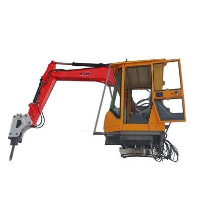 Product Description pedestal boom breaker system Main Technical Features: 1. Fixed-based rotary type and swinging type Rock Breakers are electric-driven fully hydraulic crushing equipment. 2.Mainly used for secondary crushing on ores above main chute screen under non-coal mine shaft and above screen of original ore bin of mineral process plant. 3.Adopt international advanced technology, imported brand hydraulic hammers. Great crushing capacity, smooth running, low noise, reliable performance, convenient operation. 4.It can conduct continuous operation in any complex site conditions, greatly reducing the labor intensity of workers, improving the work site environment and work efficiency. Main parameter: