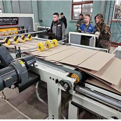 Function: can realize single volume, double volume, four volume segmentation, high segmentation accuracy. Function features of composite grey cardboard production line: multiple layers of drum base paper of different thickness and width can be combined into the required specifications of cardboard. Control mode: using PLC, frequency converter, servo drive communication control, touch screen and button operation. Automatic honeycomb board production line model: ZDFB model. Production speed: 6-20m / min. Maximum width of cardboard: 1300mm. Maximum thickness of cardboard: 6-80mm. Heating mode: electric heating, hot air circulation. Production line process of four four drum composite cardboard machine: including hydraulic paper machine, overpass conveyor, preheating, edge, glue, bonding, compaction, drying, cooling setting, longitudinal cutting, transverse cutting, automatic (artificial) paper collection and other processes. Control mode: using PLC, frequency converter, servo drive communication control, touch screen and button operation.