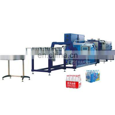 One piece single roll heat thermal shrink film overlap packing colorful automatic wrapping packaging machine sleeve wrapper Product DescriptionMachine description and features:Packing Flow: Feeding→ pushing bottles→ film covering and sealing→ shrinking→ cooling 1.Feeding: The bottles enter into conveyor trough of sealing machine, on the conveyor trough there are adjustable guardrail. The feeding will stop when the bottle arrived to the set position.2.Pushing bottles: After the bottles arrived to the pushing platform, the pushing cylinder will work at the same time to push the bottles over the sealing-cutting line.3.Cover film and sealing: After bottles pushed over the sealing-cutting line, the upper pressing device will press the bottles, this process will protect the bottles falling. After pushing cylinder return, the film sealing cylinder and film cutting cylinder will work together to finish the film covering and sealing process.4.Shrink: After finishing the film covering the bottles will enter to the shrinking stove.5.Cooling: After shrinking, the bottles will enter into the cooling device which installed on the end part, then enter into the stock shelf and waiting for stacking. Main machine: Feeding bottle mechanism Dividing bottle mechanism Film and cutting part Shrink tunnel Touch screen Electrical control box Main technical parameter:NameAutomatic high speed heat shrink film shrink packing machine ModelGD-450AMaximum size of package420*300*350mmMax. sealing size620mmLevel of the conveyor950 ± 30mmMaterial of shrink filmPEMaximum shrinkage temperature160-260℃Maximum production speed20-25packs / minWorking pressure0.6MPa-0.8MpaPower (rated/real)48kwWeight3150KGDimension of the equipment10300*1560*2150mmCompany InformationProject cases Our exhibitionWorkshop deatilsOur ServicesCustomer's service:1.Grandee company can provide turn-key project for you, only you have any idea to start beverage factory plant.2. Grandee company have professional design team, our engineer can draw bottle samples and flow chart of workshop for you .3. Grandee company give you the best quotation for all kinds of beverage production, only you can tell me which kind of drink you want to product, what is your capacity(how many bottles one hour) what is you bottlematerial, pet or glass,etcAfter service:1. We send the engineers to help installing, commissioning and training, the engineers start from our factory area.2. We supply below necessary documents with the machine: a. Machine layout b. Electricity diagram c. Machine certificate d. General manual book/maintenance book3. After one year guarantee, the seller provides payable spare parts and technician’s VISITING maintenance service. FAQQ1: How to find suitable machine or complete beverage production line?A1: Looking for beverage filling machine in www.grandeemachine.en.china.cn •Enquiry: Contact us by email, phone call, fax, Instant Messenger (Trade manager, Skype, WhatsApp, Wechat) and let us know your requirements • Discussion: Specify the items and what are you exactly looking for. Q2: Are you a trading company or a manufactory?A2: We are the manufacture of water/beverage filling machine and water treatment system over 10 years.We just not only sell drinking water machines and other related equipment , Quality is our culture. We have rich experienced engineers with technicians working team , providing good and after-sales service term , professional salesman terms . Q3: Do you have technical support after we purchased your machines?A3: We will arrange our professional technical to go aboard to your factory, they will help you and teach you how to install and maintenance the machines which you purchased. Or help you to fix machine when it has problems. Q4: If you buy our machines, can you offer us wear-out spare parts?A4: We provide our high quality machine 2 years guarantee , and we will also offer you 2 years wear-out spare parts for free. Once your machines broken or doesn't work within 2 years and you can't solve it, firstly, we will try to help you to find problems from your words description by phone or other communication tolls. Secondly, if the phone solutions still not work, our engineers will go to your factory to solve it. Meanwhile, they will teach you the related experiences for fixing.