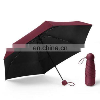 Mini Capsule 5 Fold Umbrella Auto Open Close Umbrella with Your Logo Product Description Material 190T Black coating fabric + fiberglass frame Size 20 inch * 6k Color Customized color MOQ 100pcs for folding umbrella LOGO Silkscreen printing/Heat transfer printing for umbrella Feature & advantage 1. 100% eco-friendly stainless steel material 2. Widly Use in Gift, Partey, Engagement, Anniversary, Wedding, Promotion Goods etc. 3. Great for promotions with low MOQ & cheap price. Sample time (1) random sample: 1-2 days (2) custom sample: 3-7 days Production time 10-20 days Packing info 50pcs, 55*39*20CM, 13.5KG Certification available Yes Payment method T/T, L/C, PAYPAL, WESTERN UNION, MONEY GRAM Payment term 30% deposit in advance, balance paid before shipping Product ShowProduct Categories Company Profile Packing & Delivery FAQ How to place orders with us? 1. When receiving your inquiry, we'll provide a professional quotation within 12 hours. 2. After receiving our pricings, we can discuss the details. 3. Place the order and send the artwork to us. 4. Make a virtual proof for your confirmation before sampling. 5. Samples confirmed prior to mass production. 6. Controlling the quality during the production. 7. Sending pictures before shipping. 8. Welcome any feedback and more inquiries. Contact US