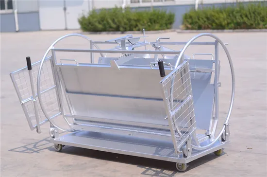Answer: The cradle-curved sides give a better hold of the sheep or goat when you are processing them through or spinning them over. Because the squeeze cradles around the body of the animal, it reduces all the fighting because they are held tightly.