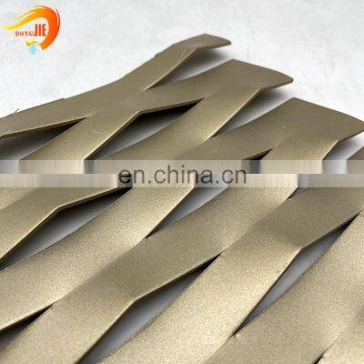 Expanded Metal Mesh FenceProduct DescriptionProduct Name Expanded Metal Privacy Screen Strips Black Steel Fence Door DesignMaterialStainless sheet, black steel, aluminum, galvanized steel, copper/brass, etc.Hole ShapeDiamond hole, flower hole, hexagon hole , sector hole, etc.Hole Size(mm)3*4, 3*5, 5*20, 7*12, 8*16, 10*20, or customized. Strand Size(mm)≥0.2mmMesh SizeCustomized by buyerSurface Treatment Powder coating, PVDF Coating, galvanization, anodizing, etc. Applications- Architectural cladding and decoration- Security Fencing- Balustrades- Walkways and staircases- Facade cladding - Curtain Wall- Ceiling- Chair/Desk- Screens- Window- Ramps- Gantries- Filtration- Cages for poultryPacking Methods- Packing in rolls.- Packing in wooden/steel pallet. Quality ControlISO Certicificate; SGS CerticificateAfter-sale ServiceProduct test report, online follow up. You May LikeWhy Choose Our ProductsExpanded metal mesh has a diverse range of properties, which makes it so versatile and appealing for many uses and applications throughout a variety of industries. From our aluminium foils measuring just 50 microns thick, through to our heavy duty 6mm thick walkway range, we offer a class leading range of choice.1. Formed from One Piece of MaterialNo fretting strands or strained joins or welds. This makes expanded mesh ideal for forming and beneficial to further processing such as pressing and shearing. The strength of mesh makes it valuable for use in multiple components.2. Minimum WasteOur process involves slitting and stretching to create holes rather than punching it out. This provides immediate cost savings than other metal processing methods. When perforating metals, all of the holes you see are wasted. 3. Strength to Weight RatioBy expanding metal from its solid sheet form additional strength is added. The uncut knuckles of expanded mesh withstand stress better than welds or joints. This makes expanded metal an ideal light weighting solution whilst also maintaining strength.4. AestheticsTaking a sample of our mesh and looking through at various angles. Favoured by designers and architects for an array of cladding, screening and interior features, our product is available in a wide array of colours, materials and designs.5. Highly EfficientElectricity, magnetic flux and heat can all flow through expanded metal mesh, as there is a continuous connection throughout each sheet. There are no breaks or welds because the mesh has been formed from a single piece of metal.6. Anti-slipThe knuckles formed by expanding mesh give sound grip underfoot, particularly beneficial when used in stair treads, ramps and walkways. We have also developed a range of specific anti-slip walkway meshes.ApplicationsExpanded metal is a type of sheet metal which has been cut and stretched to form a regular pattern (usually diamond-shaped). Due to its method of production, expanded metal is one of the most economic and strong steel mesh or grating material on the market. It can be used in many places such as: Sports Village, Middlesbrough, Outdoor Activity Security, Infant School Perimeter• Safety conscious design with no protruding bolts• Aesthetically pleasing• Suitable for sloping ground without stepping• Medium to high security system• Police preferred specificationHigh security plasterboard installation, Internal high security stock room, Internal plywood wall• ISO tested and accredited• Available in DJ Mesh SR1, SR2 and SR3 options• Cost effective and easy to install• Suitable for both render and plaster finishes• Adopted worldwide by financial institutes, retailers and high-risk sitesSite Security, Electra Substation Gate, Transformer Protection • Specifically designed and developed with the electric and telecoms industry • Deters trespassing and vandalism • Smaller post sizes make this an ideal fencing system for small compounds • Available with a front face fix option for easy installation where access to the back of the fence is restrictedPerimeter machine guarding, High value exterior site equipment, Unique design deters climbing and cutting• DONGJIE™ Super Security is the superior alternative to welded mesh, with no joins or welds• The design of the mesh makes it extremely difficult to cut and climb• Can be used on undulating ground and slopes• Exclusive mesh design eliminates the need for stringers• Non-conductive transformer protectionUnique clamping system for new or existing posts, Trackside refurbishment on existing posts, Handles sloping curves easily.• Designed to be installed on existing or new concrete and metal posts• Accommodates most types of existing post• Patented clamp design• A higher security replacement for existing woven wire systemsFacade CladdingBuilding DecorativeBarbecue Grill Ceiling/Curtain WallFurniture like Chair/DeskSecurity FencingMicro Battery Mesh Cages for PoultryBalustradesScreensWalkway & StairsPlaster or Stucco MeshIn addition to the above applications, there are many others. If you have other ideas, pls contact us. About CompanyDONGJIE WIRE MESH PRODUCTS CO., LTDWe are a secialized manufacturer for the development, design and production of expanded metal mesh, perforated metal mesh, decorative wire mesh, filter end caps and stamping parts for decades. Dongjie has adopted ISO9001:2008 Quality System Certificate, SGS Quality System Certificate and modern management system. Production LineAnping Dongjie Wire Mesh Products Factory is founded in 1996 with 5000sqm areas. We have more than 100 professional workers and 4 professional workshops: expanded metal mesh workshop, perforated workshop, stamping wire mesh products workshop ,molds made and deep-processing workshop.Packing&DeliveryQuantity(sqm)Delivery TimeShipping WayShipping Time1-3003-5 days after received your paymentDoor to door by express5-10 days300-5005-10 days after received your paymentDoor to door by express5-10 days500-100010-15 days after received your paymentShipping by