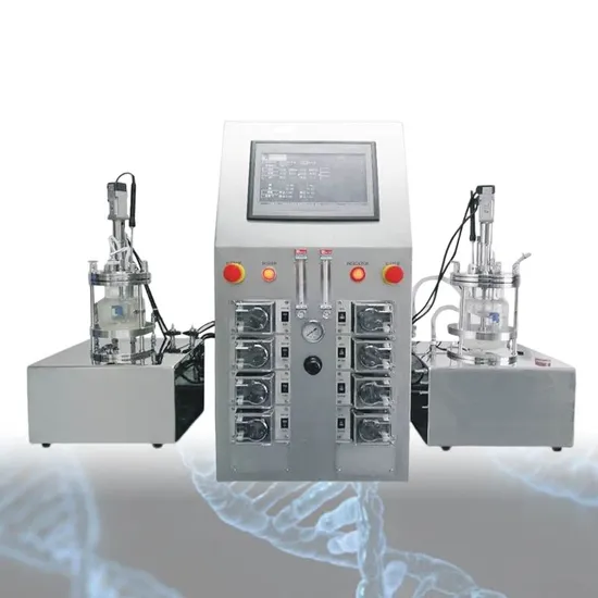 The cabinet type two conjoined parallel fermenter uses a color touch screen to display all measured values and control parameters, which greatly facilitates the user's operation. Eight peristaltic pumps are installed on the front of the control box to add acid, alkali, defoamer and culture medium to the fermenter. Various parameters in fermentation such as pH, DO, temperature and speed can be monitored by the controller, and all data and control parameters can be transmitted to the controller or computer. The structure is compact, and various components can be integrated into the fermentation system. It adopts the direct coupling mechanical stirring method driven by the upper part or the magnetic indirect coupling mechanical stirring method driven by the lower part. The structure is simple and the operation is stable.