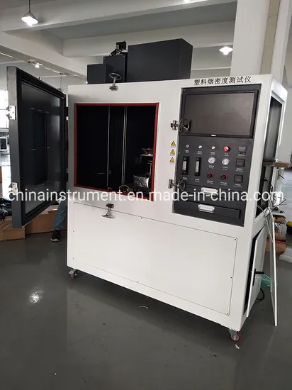 - Smoke Box (NBS Smoke Density Test Chamber ISO 5659 Fire Testing Equipment) measures optical density of smoke generated from test sample when test sample of certain thickness is exposed to heat source(2.5W/cm2, 25kW/m2using by E 662 furnace) or fire in a chamber.