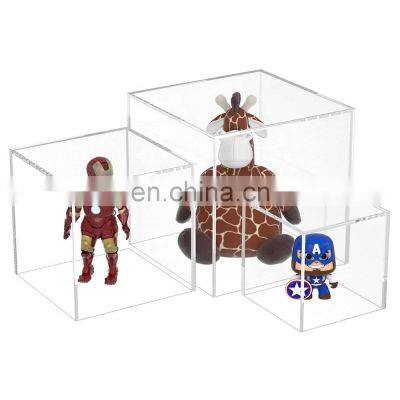 PRODUCT DESCRIPTION3pcs 5 Sided Acrylic Display Box * 5 SIDED ACRYLIC BOXES FOR DISPLAY - They are not a complete cube! Only one side is open and there is no cover. The other 5 sides are connected, with polished smooth edges.3 sizes of acrylic boxes for display: 3x3x3 & 4x4x4 & 5x5x5 inches. * STURDY AND CLEAR - It is stronger than we thought. It can even hold your vase. It is made of acrylic material, which is very clear. You will like its crystal-like color. * DUST-PROOF - It is like a box, protecting your collection. Prevent dust from getting close to your collectibles, and you don't need to worry about the display box being contaminated with dust, it is very easy to clean, you can wipe it directly with a wet towel.SpecificationsMaterial Acrylic ColorClear or CustomizeThickness3mm or CustomizeSize3 x 3 x 3'' ,4 x 4 x 4'' , 5 x 5 x 5'' or customizedSample Cost Depends: 3 times as quotationSample Time 3-7 working days Payment30% deposit and balance before shipmentShipmentBy express, air or sea DETAILED IMAGESOUR FACTORYPACKAGING PEOCESSABOUT US1. Are you a trading company or a manufacturer? We are a manufacturer. We warmly welcome our customer to come and visit us.2. Do you have any certificates? Yes, ISO9001- Quality Management System. 3. Do you support OEM ?Yes, we do both OEM and ODM.4. What warranty do I have?Products will be 100% inspected before shipment.Any defectiveness will be replaced or compensated.5. How long is your delivery time?For mold: 30daysFor order: 20-30 days depends.6. Is sample available? How long is the sample time? Yes, sample is available & free.Time: 1 days as soon as mold is confirmed. 7. What is your payment term?Mold: 50% down payment and balanced against samples confirmed. Order: 30% down payment and balanced before shipment.8. What payment methods do you accept? We accept TT, PayPal, Western Union, LC, e-Checking, Credit Card.9. What logistics service do you offer? We are offering EXW, CNF, CIF, DDU and DDP, by sea, by air, by sea, or by express. 5 Sided Acrylic Display Box 5 Sided Acrylic Display Box 5 Sided Acrylic Display Box