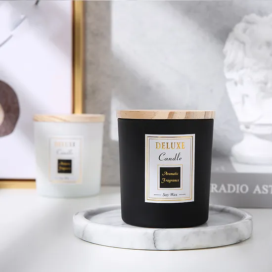 Supplier Luxury Empty 220ml 320ml Frosted Matte Black White Candle Holder Glass Candle Jar with Wood Lids