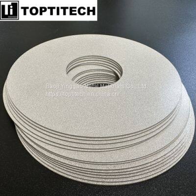 Sintered porous titanium disc is a type of porous titanium filter element. It is manufactured using industrial high-purity titanium powder (99.6% purity, with 0.4% consisting of titanium alloy elements such as nitrogen, hydrogen, iron, manganese, etc.). The production process involves sieving, cold isostatic pressing, and high-temperature, high-vacuum sintering.
