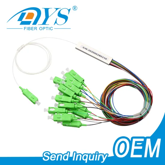 DYS Fiber Optic PLC (planar lightwave circuit) splitter is fabricated by using silica optical waveguide technology. It features wide operating wavelength range, good channel-to-channel uniformity, high reliability and small size, and is widely used in PON networks to realize optical signal power management. We provide a whole series of 1 x N and 2 x N splitters that are tailored for specific applications. All products meet Telcordia 1209 and 1221 reliability requirements and are certified by TLC for network development requirment.