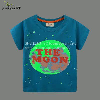 New design wholesale promotional children kids apparel fashion tops dinosaur luminous printing cotton boys t-shirts