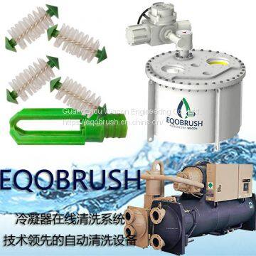 EQOBRUSH automatic online tube brushing system allows the chiller condenser and heat exchange tubes to be cleaned without downtime. Keep the tubes clean from scaling and fouling on the tube’s inner wall, thereby improving the heat exchange efficiency of the condenser and heat-exchanger, keeping the heat exchange equipment in stable performance and continuous long-term energy saving.
