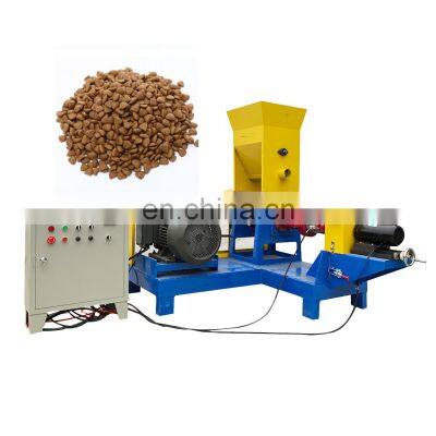 High efficiency Single screw floating fish feed pellet machine for sale with best prices Introduction of fish feed pellet machine 100kg/h floating fish feed pellet puffing machine 1.This machine uses the dry process way. feed processing process in a puffed process requires a higher material puffed method. 2.Through the process of puffed towards puffed lumen injection pressure steam and achieve materials required pressure extruding technology.3.The poultry fodder can feed chicken, rabbit, sheep, pig, horse cattles and so on. 4.Also can feed dogs ,cats, goldfish etc. The Fishery feed can feed the fish, shrimps, crab, eel, catfish, batrachia and so on. Details of fish feed pellet machine 100kg/h floating fish feed pellet puffing machine 1. Advanced international pelletizing structure. By adopting cutter shaft positioning spring, this machine can product various kinds of pellet feed.2. Unique design and simple structure make it easy to operate.3. The screw is made of special wear-resisting No38 chromium-aluminum-molybdenum.High wear resistant property extends the service life.4. Pressure-increased device is used to ensure the quality and the output. And the Electric heating device improve the feed expansion rate.5. Reasonable combination of practical mainshaft bearing, ensure the security and reliablity of machine.6. The main motor adopts high-quality Y series three-phase motor, ensure the power is strong. 7.The floating pellets can float on the water for about 12hours and easy to digest.8.The raw materials is experienced by the high temperature and high pressure, effectively kill the salmonella and colon bacillus, which relized the prevention of water pollution. Specifications of fish feed pellet machine 100kg/h floating fish feed pellet puffing machine ModelCapacityMotorFeeding motorScrew diameter Cutting motor JXGP1350.8-1.5t/h75kw1.1kwφ133mm2.2kwJXGP1602-2.5t/h90kw1.5kwφ155mm2.2kwJXGP2003-5t/h132kw1.5kwφ195mm3.0kw Pictures of fish feed pellet machine 100kg/h floating fish feed pellet puffing machine