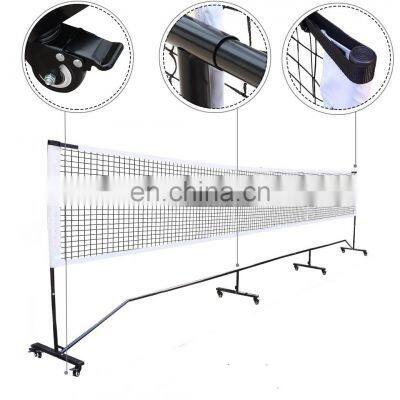 Product DescriptionPickleball Net with WheelsMaterials:Powder Coated Forged SteelNylon NettingColor: Black/White/CustomizedDimensions: 22ftx3ft/CustomizedHeight Adjustable from 36” - 68”Pack it up with ease and take it with you for your next pickleball adventure when the game is over.Play AnythingRetractable driveway net that easily adapts to your every need.Play AnywhereWith all-weather locking wheels, this net is built to withstand the elements and provide a sturdy playing surface.Play HardThe tightening straps on our forged steel poles ensure a sag-free playing experience.You also can try the following products(Clicks to see details)SpecificationitemvaluePlace of OriginChinaGuangdongBrand NamearronaxModel NumberAR014Product namePickleball NetColorCustomized ColorMaterialSteelUsageOutdoor PlaySizeCustom SizeLogoCustomized Logo AvailabledFeatureDurableMOQ1pcsPackingCarry BagApplicationOutdoor Sport GamePacking & DeliveryCompany ProfileShenzhen Senheng Trade Co., Ltd established in 2016 Who is a professional manufacturer which is focus on designing, development and production of padel racket, beach tennis racket, squash racket, badminton racket, overgrip and sport accessories.FAQ1. who are we?We are based in Guangdong, China, start from 2016,sell to North America(30.00%),South America(25.00%),Eastern Europe(20.00%),Domestic Market(6.00%),Northern Europe(4.00%),Southern Europe(3.00%),Central America(3.00%),Western Europe(3.00%),Southeast Asia(1.00%),South Asia(1.00%),Eastern Asia(1.00%),Africa(1.00%),Mid East(1.00%),Oceania(1.00%). There are total about 51-100 people in our office.2. how can we guarantee quality?Always a pre-production sample before mass production;Always final Inspection before shipment;3.what can you buy from us?Beach Tennis Racket Racket,Padel Racket,Pickleball Paddle Racket,Badminton Racket,Tennis Racket4. why should you buy from us not from other suppliers?Shenzhen Senheng Trade Co., Ltd established in 2016 Who is a professional manufacturer which is focus on designing, development and production of padels, beach tennis paddles, squash racket, badminton racket, sporting socks and sport accessories5. what services can we provide?Accepted Delivery Terms: FOB,CIF,EXW,DDP,Express Delivery;Accepted Payment Currency:USD,EUR,JPY,CAD,AUD,HKD,GBP,CNY,CHF;Accepted Payment Type: T/T,L/C,MoneyGram,Credit Card,PayPal,Western Union,Cash;Language Spoken:English,Chinese,Spanish,Japanese,Portuguese,German,Arabic,French,Russian,Korean,Hindi,Italian