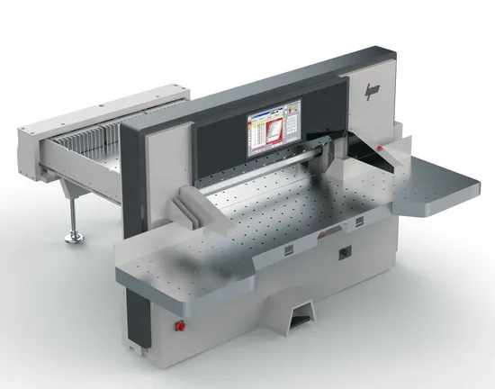 2. Clamp press paper stack through hydraulic system, the spring re-position.