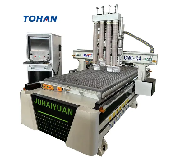 1)Function: 9kw air cooled spindle, fast tool change speed, suitable for efficient cutting, slotting, milling and other processing of panel furniture; 2) Structure: Heavy-duty body welded by high-strength thick-walled steel pipes, annealing aging and sandblasting treatment, stable structure and guaranteed accuracy; 3) Accuracy: Excellent accessories and sophisticated detection devices enable the product to obtain perfect positioning and running accuracy; 4)High speed: high-power servo motor and precision screw link design, high torque, high kinetic energy, stable operation and high efficiency; 5) Simple operation: compared with the traditional cutting method, only one person is required to operate, and even one person can operate multiple devices with simple operation and high efficiency. The design of the machine control interface is user-friendly, and the operator can start work after simple training.