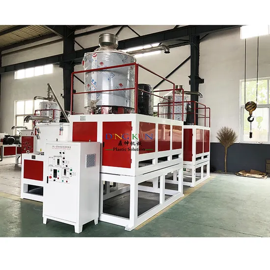 Product Description High speed mixers are widely used for mixing, drying, and coloring for all kinds of plastic resin such as PVC , PE, PP. They can also be applied in drying of engineering plastic such as, ABS, PC, etc. This unit is composed of heating and cooling mixers. Hot material from heating mixer is fed into cooling mixer for cooling to eliminate gas and avoid burning.