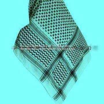 Arafat jacquard scarf,weaved by high quality acrylic yarns,two lace of flower side. Size:50"*50",52"*52",55"*55",packaging:1pcs/bag,12pcs/box,120pcs/carton. We have some in stock now.Our company also supply Arabia pure cotton kerchief,Arabian turban,Arab pure wool embroidery scarf,camoflague turban,Arabian mercerized cotton turban, with superior quality and deeply favoured by Arabian,sincerely welcome domestic and foreign businessmen come to order.