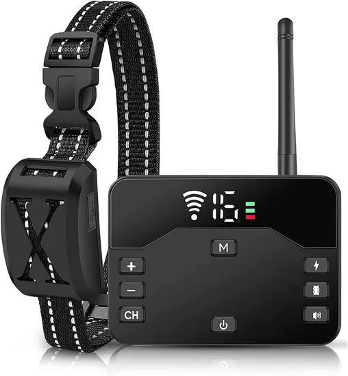 AMAZING WIRELESS DOG FENCE SYSTEM- The electric fence for dogs and training works very well; TeqHome wireless dog fence system is the latest version, combining two functions; Using the latest upgraded 2.4GHz signal source, the dog perimeter shock collar is more accurate and stable than other old WIFI signal transmission, which helps train your pet and shape good safety habits. NO DIGGING & MAX 850FT ADJUSTABLE BOUNDARY- TeqHome dog fence Set up a secure play area for your dog within 10 minutes with no need to dig or bury wires. The dog shock collar with remote waterproofing uses a radio signal to create a boundary up to 850 ft in all directions. At the same time, the circular boundary has 16 levels of adjustable distance. The electric dog fence will customize a radial-like boundary. 9 LEVELS SHOCK & VIBRATION AND SAFE DESIGN- In training collar mode, the electric dog fence can control 3 dogs at the same time; There are 3 functions that can be selected directly from the panel: sound, vibration, and shock; 9 levels of working time can be adjusted on the screen; Our wireless dog fence system features a 3.7V voltage collar that emits static electricity without harming your dog's hair. It comes with conductive posts with black silicone sleeves to keep static irritation to a minimum. FASTING-CHARGING & LONGER BATTERY LIFE- The transmitter and receiver collars are both rechargeable. This transmitter and receiver collar provides battery life that lasts for a long time, it takes only 2 hours to be fully charged. The remote control for dog shock collars can last up to 30 days of standby time! Electronic fence mode for long time use is expected to work for about a week. It is recommended to turn off the equipment when not in use to save battery life. IP65 WATERPROOF & EASY SET-UP- The wireless dog border receiver collar is made of IP65 waterproof material, which means your dog can use this wireless training collar to get wet in the grass, make a mess in the sprinkler or play in the rain! Sets up in just a few minutes, you press the mode button on the transmitter to choose the dog training collar features or Wireless fence system, turn on the collar receiver, and place it around your dog's neck. WARM REMINDER ABOUT STANDBY MODE- If your dog is inactive for 5 minutes, the receiver collar included with our wireless dog fence will automatically start standby mode, which can avoid accidents for your dog and save battery power for the wireless dog fence; when the dog becomes active again, the standby mode will be automatically released, and switch to normal mode, the wireless dog fence will work according to the previous settings. Meanwhile, you can use the transmitter again to set the receiver collar.