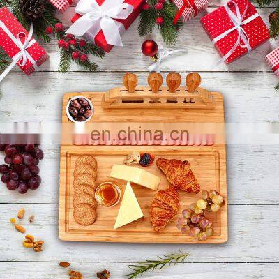 Products DescriptionUnique Bamboo Cheese Board Charcuterie Platter/natural Bamboo Wooden Cheese Charcuterie Board with Cheese Knife setColorBambooMaterial100% Natural BambooSize35*35*6 cmPackingBrown box and shrinkPortXiaMen,FuZhouPaymentL/C,T/T,Alibaba trade assurance,Western UnionDescription1.Made of durable natural bamboo known to be environmentally friendly, stronger and more beautiful than regular wood.2.Ideal for serving breakfast, dinner, wine, or just anything else, or use for an elegant decoration display.3.Elegant sides with wide handles for easy grip. Surrounding tray lips prevent items from falling over.4.Hand wash with mild soap warm water, for extended life of tray use bamboo oil occasionally.Pelative ProductsIn-store activitiesFactory introductionProduct packagingFAQ