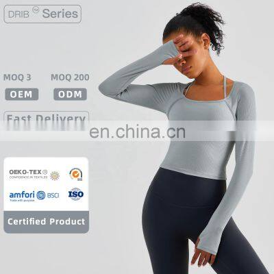 Product DescriptionProduct Name:Women Ribbed Thumb Hole Gym Sports 2 In 1 T Shirts Long Sleeve Yoga Tops Factory SaleProduct Number:CX1489Type:Women's T-shirtsFabric Features:Breathable, durable, moisture wicking, quick-dry, great stretch, comfortable, flexibleColor:As picture Size:xxs-4xl (Or customized )MOQ:200PCS Logo:Heat transfer ,screen printing ,embroidery, label sewing ,weaved waisted ,silicon printing Payment:West Union,T/T,Paypal,Bank Transfer,Money gramPacking:1PC/Pet bag , or as you requirementsShipping:Ems/DHL/Fedex/TNT/Sea shipment Port:ningbo/shanghai /shenzhenDelivery days:7-15daysPackaging & ShippingAll products, we will pack them carefully, every item will be pakaged with PP bag, and using the bubble bag, carton or any other protected stuff if necessarily.By sea or by air+truck transportation(DDP), or by Air express, such as DHL, FEDEX, UPS, EMS etc.(door to door )Our Services1.24 hours online customer service.2. Low MOQ for initial order.3.And you can also choose to ship the goods by air,such as DHL, UPS, Fedex, TNT and so on.4.We provide OEM/ODM service.You can customize the product color and package with your own brand.FAQ1)who are we ?We are a manufacturer with 11 years of experience. Since 2009, we have researched fitness clothing and independently developed fabric design styles. Now, we have become a stable manufacturer of middle and high-end yoga in China.2)How can we guarantee quality ?Always a pre-production sample before mass productAlways final inspection before shipment3)What can you buy from us ?Fitness clothes (yoga clothes)4)Why should you buy from us ?1.Experienced in logistic ,market and internation trading service2.Experienced design team accept ODM/OEM5)What serices can we provide ?1.Accepted delivery term:FOB,CFR,CFR,CIF,EXW,DDP,DDU,EXPRESS2.Accepted payment currency :USD EUR CNY3.Accepted payment type :T/T L/C ,Paypal ,western union ,escrow4.Language spoken :English Chinese