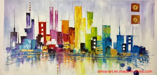 Handmade City Skyline Canvas Oil Paintings for Home Decor