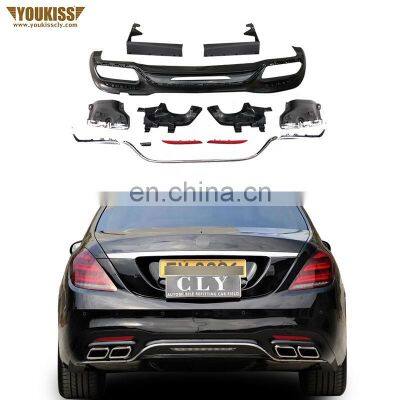 Genuine Diffuser For Mercedes S-Class W222 2018+ Facelift S63 AMG S65 AMG Rear Lip Exhaust Pipe Tips