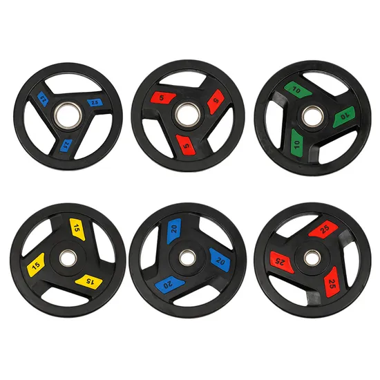 Product Description Premium Rubber Grip Weight Plates for weightlifting Introducing our high-quality rubber-coated weight plate by Hefei Dayu Fitness Co., Ltd. This disc is perfect for weightlifting and features a tri-grip design for easy handling. Elevate your gym equipment with this durable and versatile weight plate.