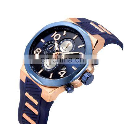 TITEL High quality luxury Stainless steel watch black silicone strap in wrist watches with 24 hour Sport watch for Men [ OEM & ODM ]Product DescriptionCase MaterialStainless SteelCase ColourAny Color AvailableDiameter Size44 MMStrap MaterialSilicone bandStrap Width27-24 MMMovementJanpan Miyota MovementWater resistance10 ATMBrandCustomized Your LOGOLOGO positionCase / Case Back /Dial / Buckle /Crown / BoxesSample Leadtime3-5days for the stock models Production Leadtime30-45 working daysMore ProductsFor further information about above models, pls contact us!Company InformationHK Dualtime watch industry Co., Ltd is a watch manufacturer build up in 2009 and passes through the certification of ISO9001. The factory area is 1400 square meters, and the annual yield is 500000pcs watches. The company owns a professional research & development team. We can do 300 meter waterproof with good quality. There are more than 2000 watch styles and more than 500 watch samples available, which include lovers series, lady series, sports series, military watch series, gentleman series, electronic series and gemstone series. Most watches are exported to Europe, America, and Southeast Asia. Certifications Our ServicesQuality checking standard:1. All incoming parts and assembled watched will be checked carefully during the whole process.2. All watches will be passed through the waterproof testing.3. All watches can be complied with CE/RoHS, nickel free, etc. 100% safety strap, comfortable, eco-friendly and non toxic to body.Gurantee period:Our gurantee period is one year since the delivery time of mass shipment. During this period, we will take full responsiblilty for all deffective caused by normal using. Either you can send back for repairs, or we send out new parts for your replacement. FAQQ: What is your MOQ? Can i mix colors & styles?A: No MOQ limited for stock watches. Q: Can we have our logo on the watches?A: Yes, you can. Q: Will you provide samples and how much is it?A: sample cost for stock model will be US$50/PC. If need customized logo sample, it will cost US$100/PC. Q: How long is the delivery time of samples and mass order?A: 3-5 days for stock samples without logo, 30-45 working days for mass order if we have enough stock parts. Q: About paymentA: by T.T. If sample order, full payment before shipment. If mass order, 30% deposit after order confirmation, 70% balance beofre mass shipment. For more discounted products, pls contact us as below. Thanks!