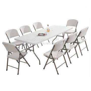6ft, 180cm,can make 8-10seats, table is very light weight, only 15kg, Perfect for exhibition, tradeshow, parties, picnics, barbecues, weddings, caterers and more.