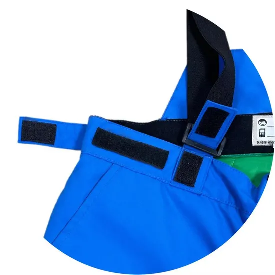 The design features adjustable suspenders, which ensure a secure and comfortable fit for children. The suspenders are essential for keeping the pants in place during active play, preventing them from slipping down. This type of pants adopts a double-layer design, with elastic bands on the inner side of the bottom of the pants legs, which can better keep warm and prevent snow from splashing into the interior. The pants come in a vibrant blue color with black accents, making them visually appealing and easy to spot on snowy slopes.