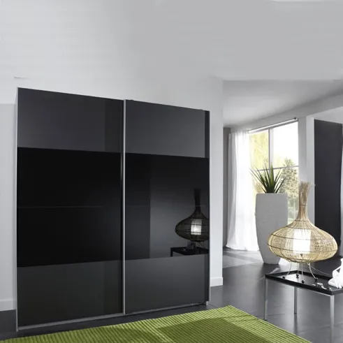 Sliding Wardrobe with Black Glass Panel Modern Home Bedroom Wardrobes