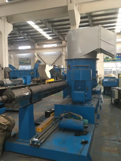 The HS series Agglomerator and watering cutter plastic recycling production line is mainly consisted by the following equipments: belt conveyor (roller conveyor), agglomerator, extruder, ( vacuum degassing system), hydraulic screen changer, watering cutting system,dewatering machine, air blowing system, (feeding and drying system)...etc.