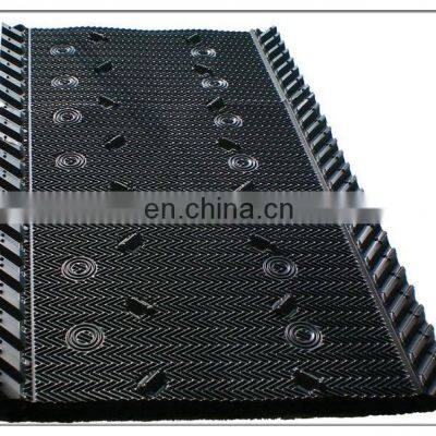 cooling tower fill material is a hanging film type cooling tower fill which spreads the water into a thin film, flowing over large vertical surfaces, promoting maximum exposure to air flow. This fill provides much more water surface exposure per cubic foot than splash type fill.