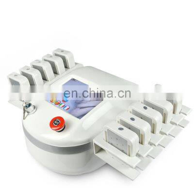 Portable Lipo Laser Body Contouring machine for body/arm/leg slimming Lipo laser Theory:Lipo laser for fat reduction,use the 650nm soft laser to destroy the deep fat cells,broke the cell membrane,change the fat to triglyceride,then leave out the body,thanks to metabolism.The laser heat can Stimulate the subcutaneous dermal tissue collagen and elastic fibers hyperplasia,make the treated area skin tighten and elasticity Application:Intensive physicallipolysis to remove fatExcess fat cell meltedBody slimming,cellulite reductionSmooth fatigueRemove obstruction from channels and collateralsPromote and accelerate the body’s metabolism Specification: Item No:RL-I03 Material:ABS plastic Colour: grey Screen: 8 inches display screen Laser wavelength: 650nm Laser type: Diode laser Mumbers of treatment probe: 10(8 big probes and 2 small probes) Mumbers of diode laser: 162 diode lasers Timer: 30 minutes Max Output Frequency: 1Hz to 1000Hz adjustbale Cooling Requirements: Air cooling Working temperature: 10-40 degree NW.AND GW:12KGS/16KGS Input current: 240V/110V AC Size:45*45*42CM How Does It Work And What Is The Treatment ProcessLaser safety penetrates patients skin at a specific wavelength ( 650nm) targeted for Adipose ( Fat ) cells. Adipose cells are permeated releasing free fatty acids (FFA`s), water and glycerol. Together these compounds are known as Triglycerides. Triglycerides are normally released from fat cells when the body needs energy once released the glycerol and free fatty acids are used by the body as an energy source. Adipose cells `` shrink`` significantly resulting in inch loss for the patient. Exercise or a 10 minute Whole Body Vibration session is recommended immediately post LipoLaser treatments to burn FFA`s within the body and help stimulate the lymphatic system.5-10 minute Consultation with Technician about the LipoLaser and their goals and concerns. Paddles are then place onto body areas of a time that is discussed during consult.Treatment to be repeated is necessary. Results are shown during first treatment however; to gain maximum results 8-10 treatments depending on area will be neededProduct Details : Packaging & ShippingPayment and Shipping:PaymentT/T , West Union, MoneyGramShippingBy Express :DHL,UPS, FedEx, TNT, EMS ,ARAMEX By Air : Worldwide Air port By Sea Shipping time when we receive money ,we will send the machine in 3-4 work days.Our Services1.answer your enquiry in 24 working hours.2.Experienced staffs answer all your questions in professional and fluent English.3.Customized design is available. we can offer OEM&ODM for you .4.Exclusive and unique solution can be provided to our customer by your our well-trained and professional engineers and staffs.