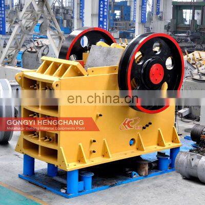 Product DescriptionHigh Efficiency Mining Equipment pe 250*400 pe 150x250 Jaw Crusher With Screen Stone Jaw Crusher Machine For Gold Mining Jaw crusher is an efficient and energy-saving crushing equipment, divided into two kinds: coarse and fine broken, PEF series is used for coarse breaking, and PEX series is used for medium and fine breaking. Has the advantages of large crushing ratio, simple structure, reliable work, easy manufacture, convenient maintenance, etc.Jaw Crusher Application:It is applied to fine crushing of various material of which compressive strength is less than or equal to 320Mpa, is applied to relatively small feeding material granularity and relatively small discharging gate, and is fitted for the secondary crushing.Hengchang provides a complete line of stone production; the output is widely used in road, bridge, house, high building, railway.You can click here to get preferential prices and more product details!ModelFeeder Opening Size(mm)Max. Feeding Size (mm)Discharging Opening Size(mm)Capacity (t/h)Motor Power (kw)Overall Dimension (mm)PE400x600400x60035040-9015-60301700x1750x1680PE500x750500x75042550-10040-130452150x1900x1950PE600x900600x90050060-12590-180552500x2010x2350PE750x1060750x106063060-150110-3801102630x2310x3110PE900x1200900x120075095-165220-4501323720x2850x3250PE900x1200900x120075095-165220-4501323720x2850x3250PE1200x15001200x15001020150-300400-8002203710x3446x4075PE1500x18001500x18001200210-360520-11002805100x4700x4300Performance Characteristics1) Simple structure, convenient in use and maintenance. Stable performance, low operation cost, high crushing ratio.2) Crushing cavity depth and no blind spot, increasing the feeding ability and capacity.3) High crushing ratio, uniform product size.4) Gasket type discharging mouth adjusting device, reliable, convenient and the adjust ingrange is big, increase the flexibility of the equipment.5) Lubrication system safe and reliable, easy to parts replacement, small maintenance workload.6)Simple structure, reliable operation, low operating costs.7)Energy saving: stand-alone energy saving 15% ~ 30%, the system energy saving more than double.8)Discharging mouth wide adjustment range, can meet the requirements of different users.9)Low noise, little dust.Working principleJaw crusher machine uses motor as its power. Through the motor's wheels, the eccentric shaft is driven by the triangle belt and slot wheel to make the moving jaw plate move by a regulated track. Therefore, the materials in the crushing cavity ,which is composed of fixed jaw plate, moving jaw plate and side liner,can be crushed and discharged through the discharging opening.You can click here to get preferential prices and more product details!Customer casesJAW CRUSHER CASEAs the primary crusher to the medium size crushing of various ores and large-size materials.2.150t/h3.Large crushing ratio, high productive capacity, easy operation.4.1200TPD in Tanzania.JAW CRUSHER CASE1.As the primary crusher to the medium size crushing of various ores and large-size materials.2. 20t/h3.Large crushing ratio, high productive capacity, easy operation.4. 200TPD in India.Company ProfileGongyi Hengchang Metallurgy Building Material Equipments plant was built in 1992, a professional manufacturer specializing in the production of coal slurry dryer, coal slime dryer , coal dryer ,sawdust dryer , fly ash dryer , slag dryer ,vinasse dryer and so on.We have professional engineers and experienced workers in our factory, we ensure that we supply good quality and good price to our customers. Customer Visit & Our Service(A) Pre-sale services: Act as a good adviser and assistant of clients, enable them to get rich and generous returns on theirinvestments. 1.Select equipment model; 2.Design and manufacture products according to clients' special requirement; 3.Train technical personnel for clients; 4.Services during the sale;(B)Provide considerate services to minimize clients' worries: 1.Assist clients to prepare for the first construction scheme;2.Install and debug the equipment; 3.Train the first-line operators;4.Examine the equipment; 5.Take initiative to eliminatethe troubles rapidly; 6.Provide perfect service; 7.Provide technical exchanges..(C).After-sale services:Provide considerate services to minimize clients' worries: 1.Assist clients to prepare for the first construction scheme;2.Install and debug the equipment; 3.Train the first-line operators; 4.Examine the equipment; 5.Take initiative to eliminatethe troubles rapidly; 6.Provide perfect service;7.Provide technical exchanges...Packing and deliveryPackaging Details:We will make different packaging according to different machine sizes standard international export packing,container, wooden box.Delivery Time:We will customize according to the actual needs of customers. Senior designers start to design the plan. After receiving the deposit, we will complete the delivery within 15 to 25working days.FAQQ: For providing you the suitable quotation we need to know the following information:A:1. What is the raw material?2. What is the capacity per hour you required ?3. What is the maximum input size of the raw material ?4. What is the final briquettes size and shape you want? Once we get your answers, I can provide you the best quotation immediately.Remarks: The price will depend on different models.Q: What about Warranty of the products ?A:Gongyi hengchang machinary grants our customers a twelve-month-period warranty from the date of delivery for machines exported from us. During the warranty period, in case any defect of material or workmanship occurred with spare parts in norma operation,we will at our discretion replace or repair the defective parts freely.