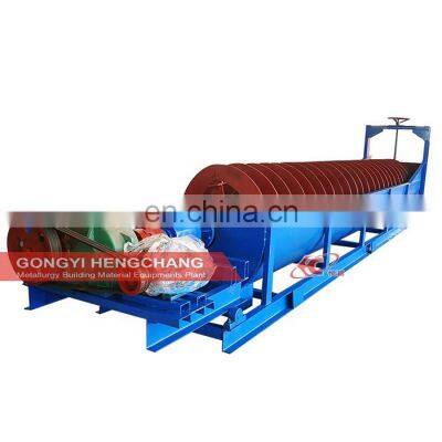 Spiral Sand Washing Machine for River Sand WashingApplication Of Spiral Sand Washing Machine:Fine stone powder, river sand, arrgetates, artificial sand, balsalt artificial sand, diabase sand etc for washing, grading, cleaning in building materials, utilities and other industries.river sand washing machine / spiral sand washing machine / sand in washing machineDescription of Spiral Sand Washing Machine:Sand washing machine is artificial sand wet processing of the necessary equipment, which can effectively improve the quality of the finished sand.Our development and production of XSD series of highly efficient bucket wheel sand washing machine combined withthe actual situation of domestic and gravel industry, both cleaning, dewatering, grading three functions, widely used in metallurgy, building materials, utilities and other industries washing, grading, cleaning and other operations.Features of Spiral Sand Washing Machine:1.Clean sand can be collected and lost less.2.Reasonable design, new-type seal stucture and totally-enclosed oil bath type transmission device.3.High capacity, low power consumption.4.Water-saving, no pollution and long life span.5.Easy maintenance.river sand washing machine / spiral sand washing machine / sand in washing machineWorking Principle :Power plant by belt, reducer, gear reducer drive the impeller rotates slowly, sand and gravel from the feed chute into the wash tank cleaning, rotation of the impeller take the water and sand away through the sieve filter out the clean sand. Finally, gravel from the rotating impeller into discharge chute and completion of gravel cleaning effect..Parameters :ModelSpiral diameter(mm)Speed of Spiral(r/min)Power (kw)Slope (°)Power(KW)Sand Return (t/h)Overflow (t/h)FG5005008-12.56-113212-181.1FG7507506-1011-246512-183FG100010005-825-4511012-185.5FG120012004-650-8015512-187.5FG150015004-670-11523512-187.5FG180018002.5-6100-19031012-1811FG200020003.6-5.5160-23040012-1815river sand washing machine / spiral sand washing machine / sand in washing machineCompany Profile: About HENGCHANGHengchang headquarters is located in the industrial park in Gongyi City. It covers a total area of 150,000 square meters, including 100,000 square meters of standarized workshop. There are more than 200 sets of various large and medium-sized metal processing lathe, riveting machine, welding equipment and assembly equipment. We have more than 300 workers, including more than 20 middle and senior technicians. Hengchang is mainly focus on 4 series products: stone crusher machines, sand making equipment, powder grinding mills, mineral processing equipment and their spare parts. Every year, Baichy can turn out 1,000 sets of crushers and 10,000 tons of crusher parts.Customer Visit & Our Service1>Pre-sale services: EnthusiasmWe provide you with the prophase plan, process flow design and manufacturer equipment according to your special demand.2>Sale services: ServantSend technicians to the jobsite for guiding the installation and adjustment, training operators and finishing the check and accept together with you.3>After-sale services: FaithfulnessTo establish long term friendship, we will regularly pay return visit to customers. Supplying technique, building design, instruction, installation and debugging for free.Our Workshop1.We are factory and be able to give you the lowest price than market one; 2.Our products have been exported to over 80 countriesand widely used in global mining and construction industry; 3.We have a professional after-sale service team to promptly and thoroughly solve your problems;4.Provide free process design.Packaging Details:Standard export packing, Spare parts in wooden case, big machines loaded incontainer,large machines use nude packing, cover with plastic cloth. We export through QingdaoPort, also can be nominated by customer. We have superior cargo agent to arrange thesea shipment for each client, competitive price, secure transportation.Delivery Time:We will customize according to the actual needs of customers. Senior designers start to design the plan. After receiving the deposit, we will complete the delivery within 10 to 20working days.FAQ1>How about price?Yes, we are factory and be able to give you the lowest price than market one, and we have a policy that “ for saving time and absolutely honest business attitude,we quote as low as possible for any customer, and discount can be given according to quantity”.2>How long is your delivery time?7-10 days for the stock, 15-30 days for the mass production.3>What is your payment method?30% deposit in T/T advance, 70% balance before shipment.4>How long is the warranty? Does your company supply the spare parts?3 year. Spare parts for you at lowest cost.5>If I need the complete crushing plant can you help us to build it?Yes, we can help you set up a complete production line and give you related professional advice. We had already build many mining projects in China & Overseas.We are the most professional supplier of wheel bucket sand washer, we can supply the qualified machines and all the spare parts for the whole sand making plant,and to know more information about our other mining equipments, please feel free to contact us,Thank you !!!