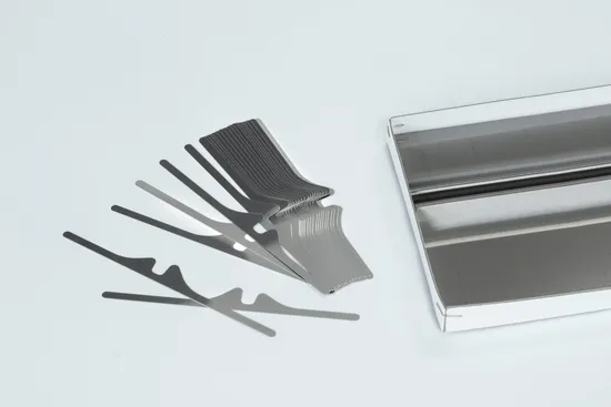 Our profile reed dents used for making reeds for airjet looms, we use raw material S.S.301 and 420 for dofferent fabrics. We have full range of dents for making different reeds, the width of the dents is 4mm, the length of the dents can be 101mm,104mm,105mm,106mm,110mm,113mm. For special fiber weaving we can make special coating on the dents surfact to make the dents much more strong. We can also produce HC dents, DLC dents and Conical dents.