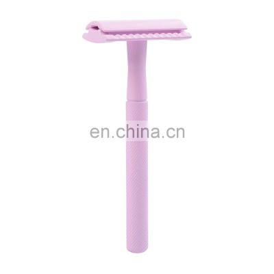 KINGHOOD FactoryVRProduct DescriptionDescription:Manual Shaving Customized Double Edge Women Safety Shave RazorsSize10.8cmx4.3cmMaterial:Zinc alloy, brassColor available:Pink, Rose gold, Gold, Black, Silver, customizedPacking available:white box, gift boxPayment30% deposit,70% againest faxed document. T/T,Paypal....ShipmentDHL,FedEx,UPS....By air and sea are availableWhy Choose UsFAQQ1:Are you a factory or trading company? A:Absolutely we are a factory with more than 12 years production experience. Q2:Can you customized my own brand or designs? A:We're the direct manufacture and it's available to customize your preferable design and brand & Logo.Just please provide your full requirement and documents to our sales, then they will give you the professional suggestions. Q3: Can you do OME?A:Yes,we can do OME products. It's no problem.Q4:May I ask for a free sample? A:We are glad to send you a free sample if we have the stock, but it is your turns to pay the courier fee. Q5:What is the minimum order quantity of your product? A:The MOQ of mirror is 3000pcs,For the razor 10pcs.