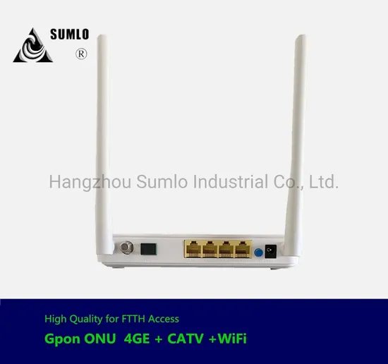 Gpon ONU 4GE for FTTH/CATV/ HFC 4* 10/100/1000M with wifi It's based on the mature, stable, high cost performance GPON technology and has gigabit Ethernet switching, WDM and HFC technology. SML- 704GW has a higher bandwidth, higher reliability, easy management and good quality of service (QoS) guarantee with technical performance of equipment meet the ITU- T G. 984 requirements and have good compatibility with third party manufacturers OLT.