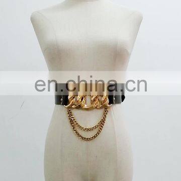 TWOTWINSTYLE Waist Sweat Belt For Women PU Patchwork Metal Chain Hollow Out Adjustable Streetwear