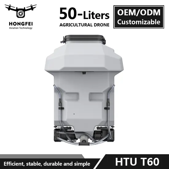 HTU T60 Intelligent Drone HTU T60 Agricultural Drone: Operational efficiency is fully optimized, with a maximum load of 60kg, a spraying tank of 50L and a spreading tank of 76L.